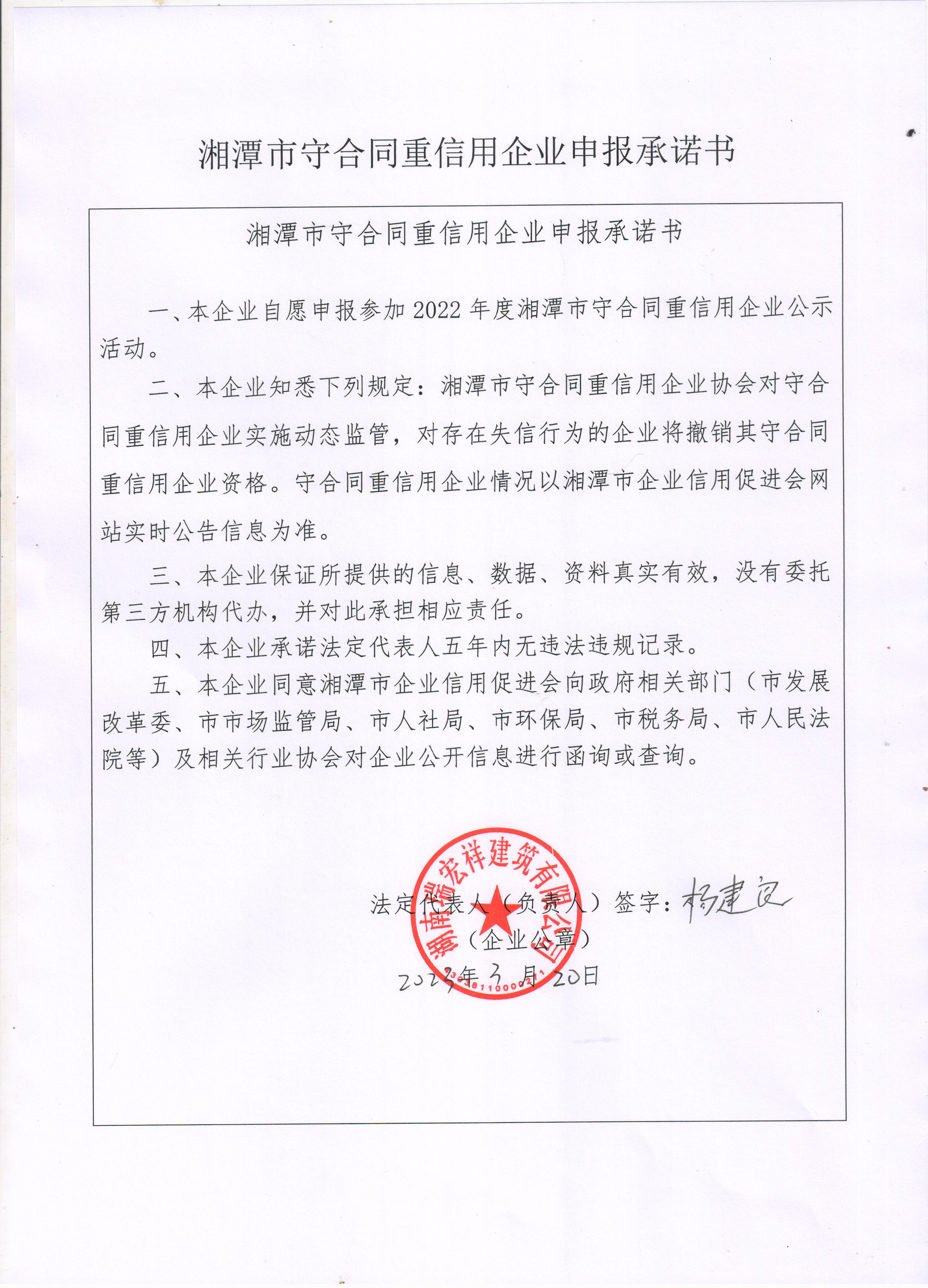 本企業(yè)根據(jù)《湘潭市守合同重信用企業(yè)申報規(guī)定》等編制 2022 年度企業(yè)信用報告書,并保證本報告書內(nèi)容真實、準確、完整。