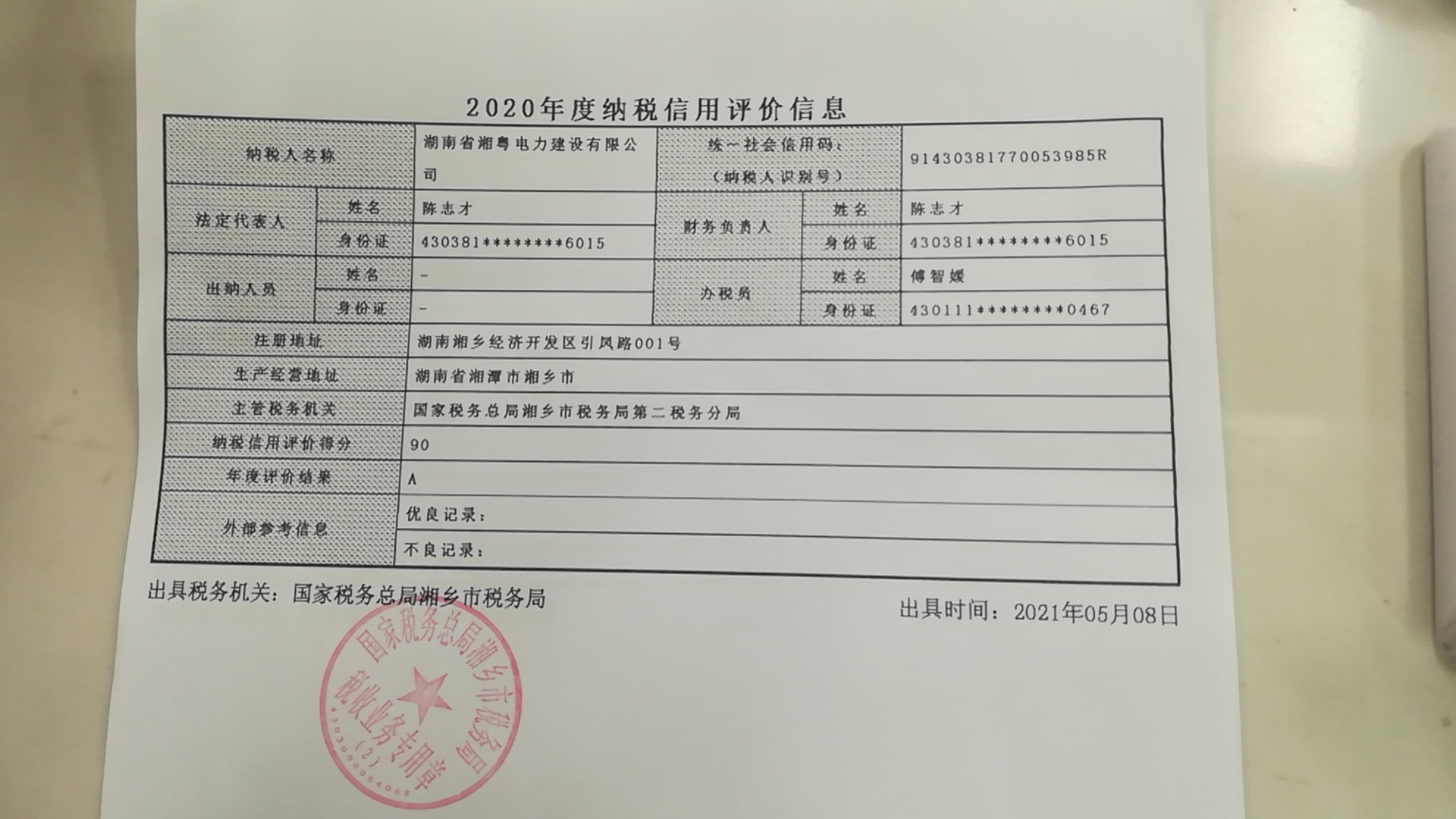 企業(yè)納稅信用等級(jí)報(bào)告: