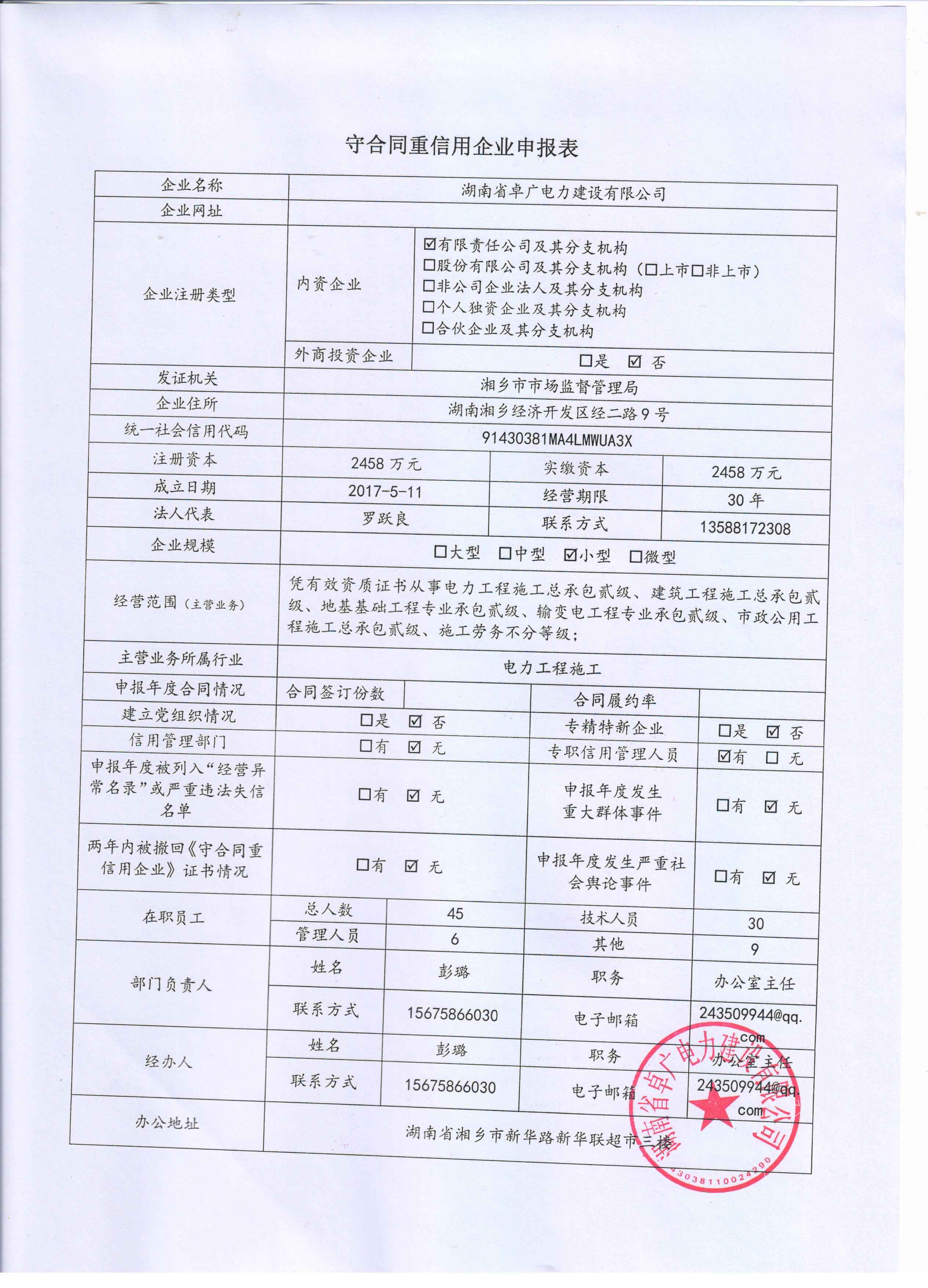 本企業(yè)根據《湘潭市守合同重信用企業(yè)申報規(guī)定》等編制 2024 年度企業(yè)信用報告書,并保證本報告書內容真實、準確、完整。