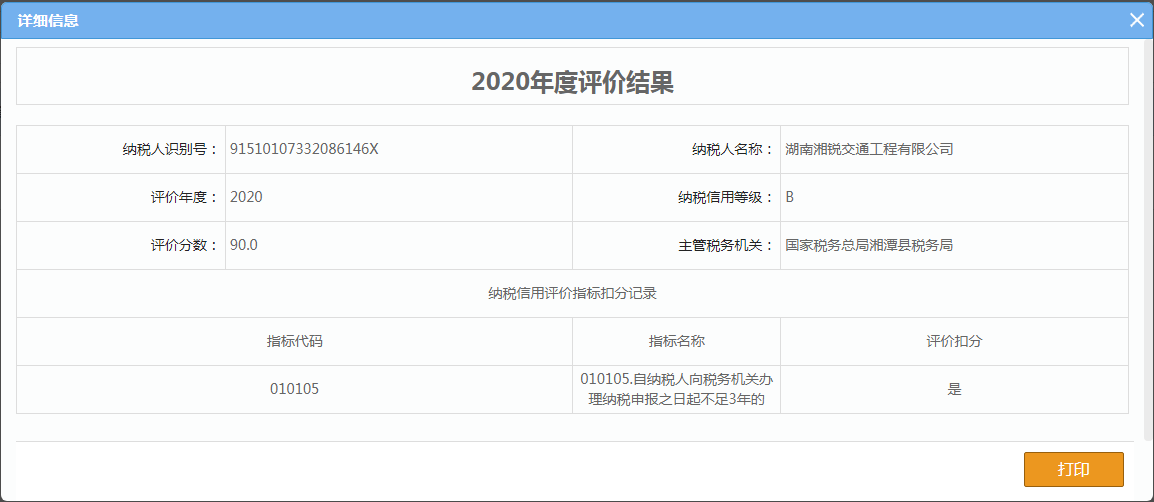 企業(yè)納稅信用等級報告:
