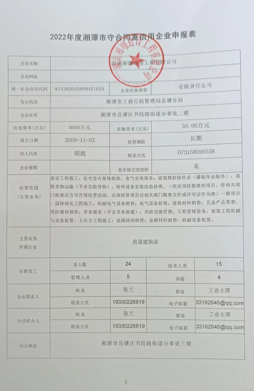 本企業(yè)根據(jù)《湘潭市守合同重信用企業(yè)申報規(guī)定》等編制 2022 年度企業(yè)信用報告書,并保證本報告書內(nèi)容真實(shí)、準(zhǔn)確、完整。