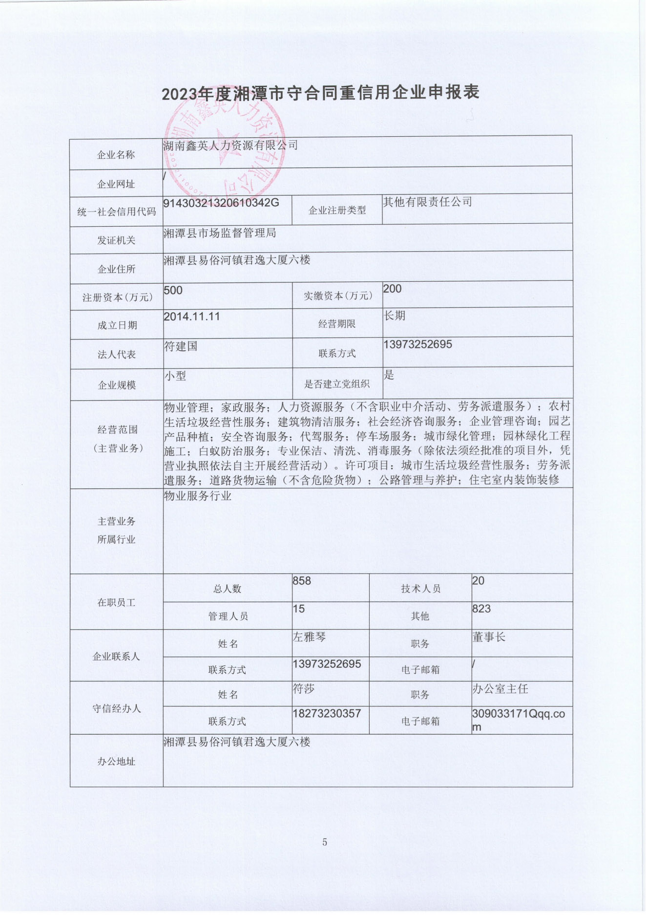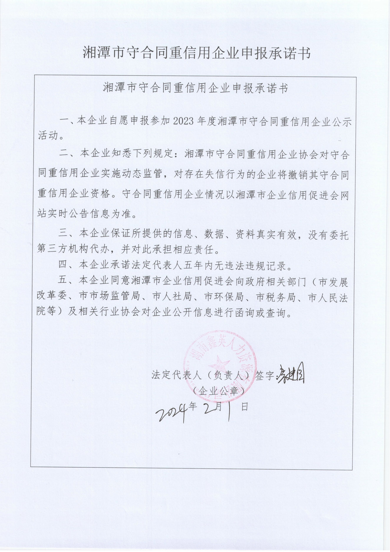 本企業(yè)根據(jù)《湘潭市守合同重信用企業(yè)申報(bào)規(guī)定》等編制 2023 年度企業(yè)信用報(bào)告書,并保證本報(bào)告書內(nèi)容真實(shí)、準(zhǔn)確、完整。