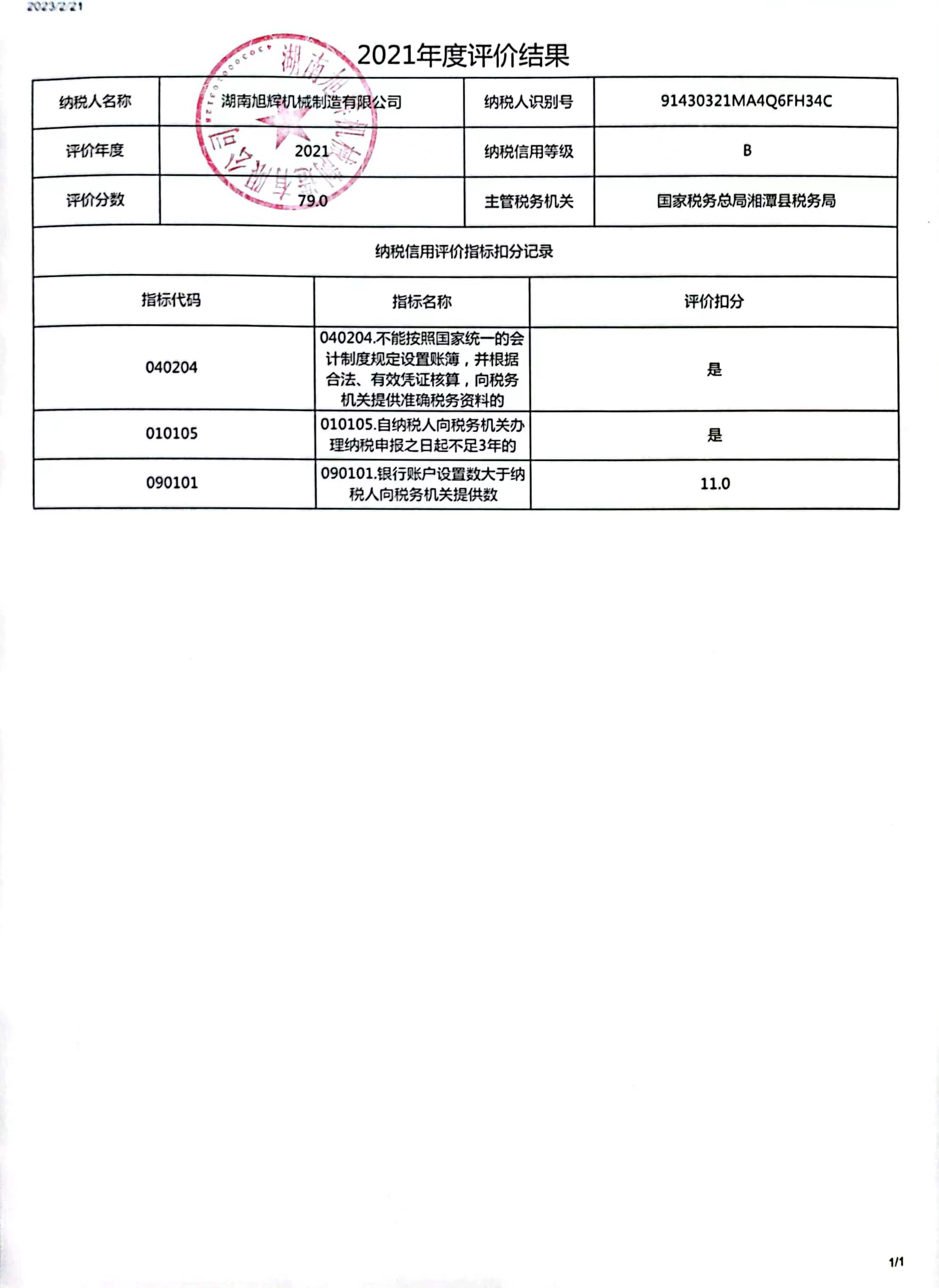 企業(yè)納稅信用等級(jí)報(bào)告: