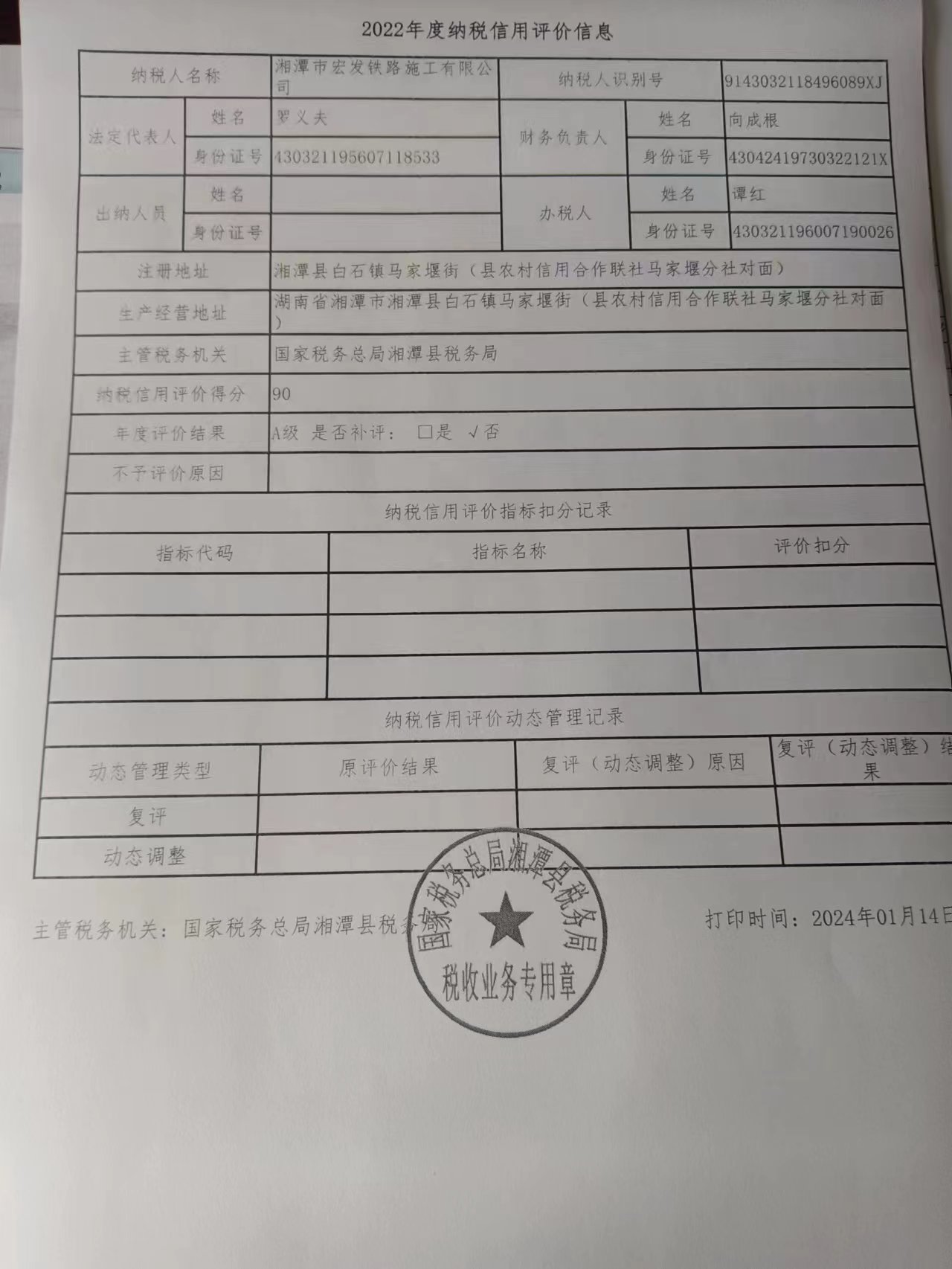 企業(yè)納稅信用等級報告: