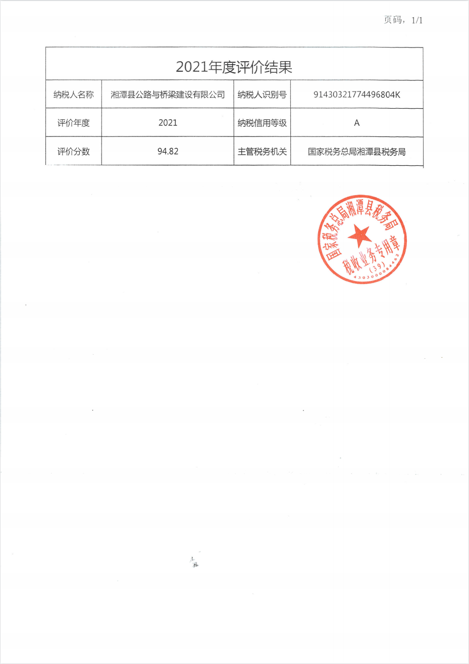企業(yè)納稅信用等級(jí)報(bào)告:
