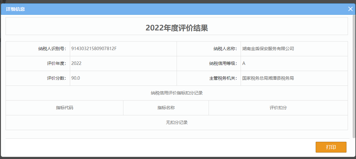 企業(yè)納稅信用等級報告: