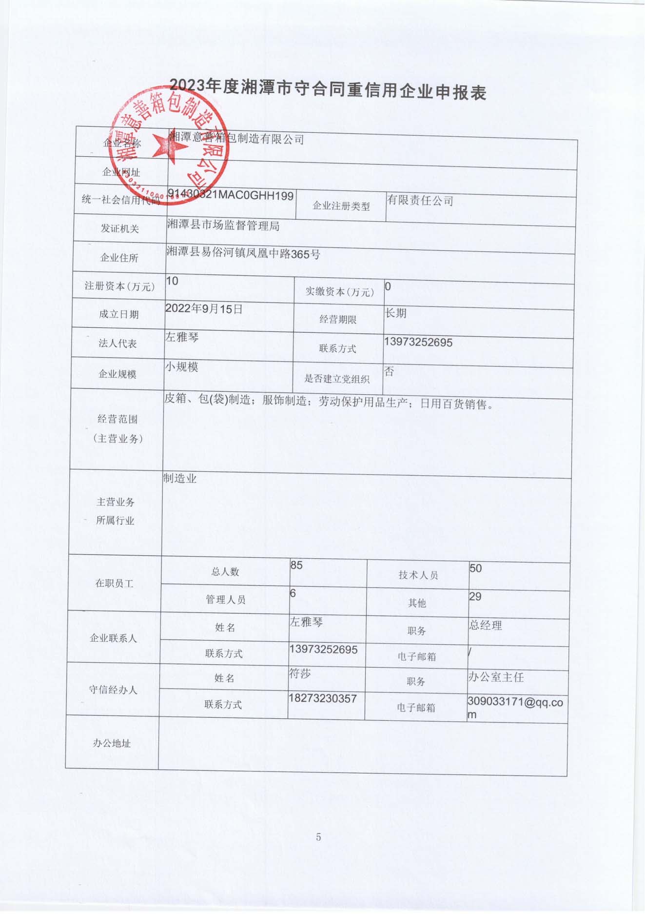 本企業(yè)根據(jù)《湘潭市守合同重信用企業(yè)申報(bào)規(guī)定》等編制 2023 年度企業(yè)信用報(bào)告書(shū),并保證本報(bào)告書(shū)內(nèi)容真實(shí)、準(zhǔn)確、完整。